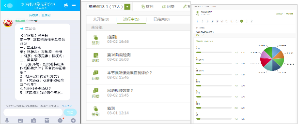 从左至右:课后思考题推送、课后检测及问卷、学生回答情况