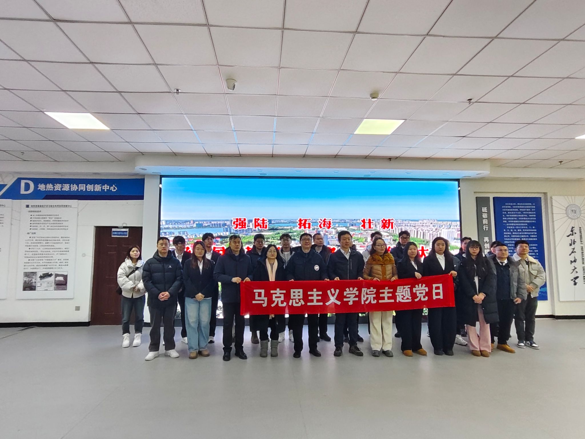 为推动思政教育与专业实践深度融合,引导青年学子厚植能源报国理想信念,2025年12月24日,美加墨世界杯官方网站马克思主义学院、非常规油气研究院组织开展“行走的思政课”实践活动。来自地球科学学院、石油工程学院的师生代表及思政课教师组成研学团队,以古龙页岩油勘探开发为核心主线,先后走进学校非常规油气研究院、肇源古龙页岩油田及大庆油田勘探开发研究院,在实地研学中感悟大庆精神、汲取奋进力量。