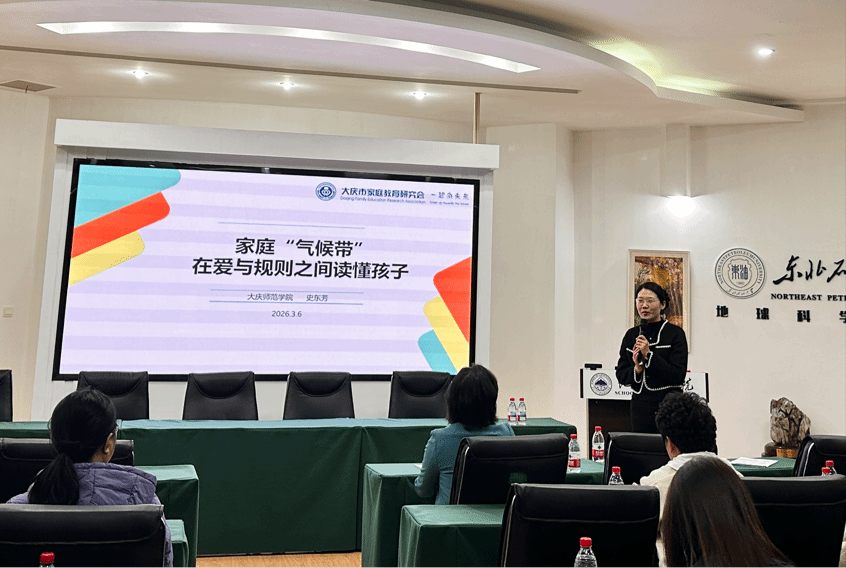 活动伊始,学院邀请大庆市家庭教育研究会讲师团成员—大庆师范学院史东芳副教授,开展以家庭教育为主题的专题讲座。史东芳副教授以《家庭“气候带”—在爱和规则之间读懂孩子》为题,结合新时代家庭教育的重要意义,深入浅出地解析了当前家庭教育面临的新形势、新问题。整场讲座内容务实、互动热烈,既有理论高度,又有实践指导意义,为日常家庭教育提供了科学指导,大家收获满满。