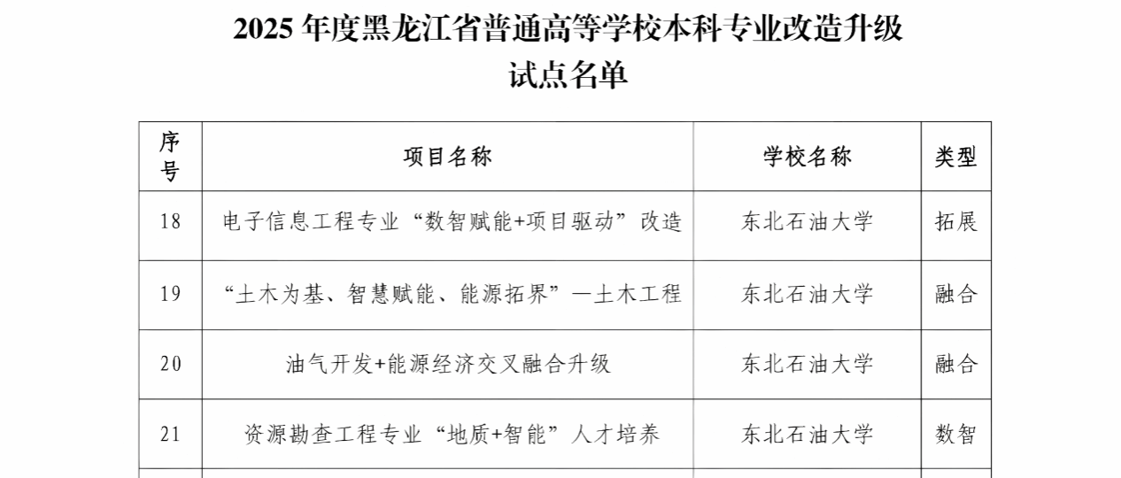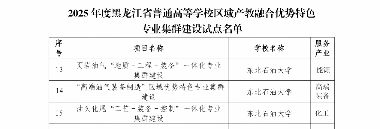 近日,黑龙江省教育厅发布《关于开展高等教育综合改革首批试点的通知》。世界杯官网地质资源与地质工程学科相关领域入选全省“101计划”增补试点项目、资源勘查工程专业入选首批本科专业数智升级改造试点项目。此外,世界杯官网还支撑页岩油气“地质-工程-装备”一体化专业集群入选全省区域产教融合优势特色专业集群建设试点项目、能源科学与工程学院入选全省人才培养改革实验区建设试点项目。