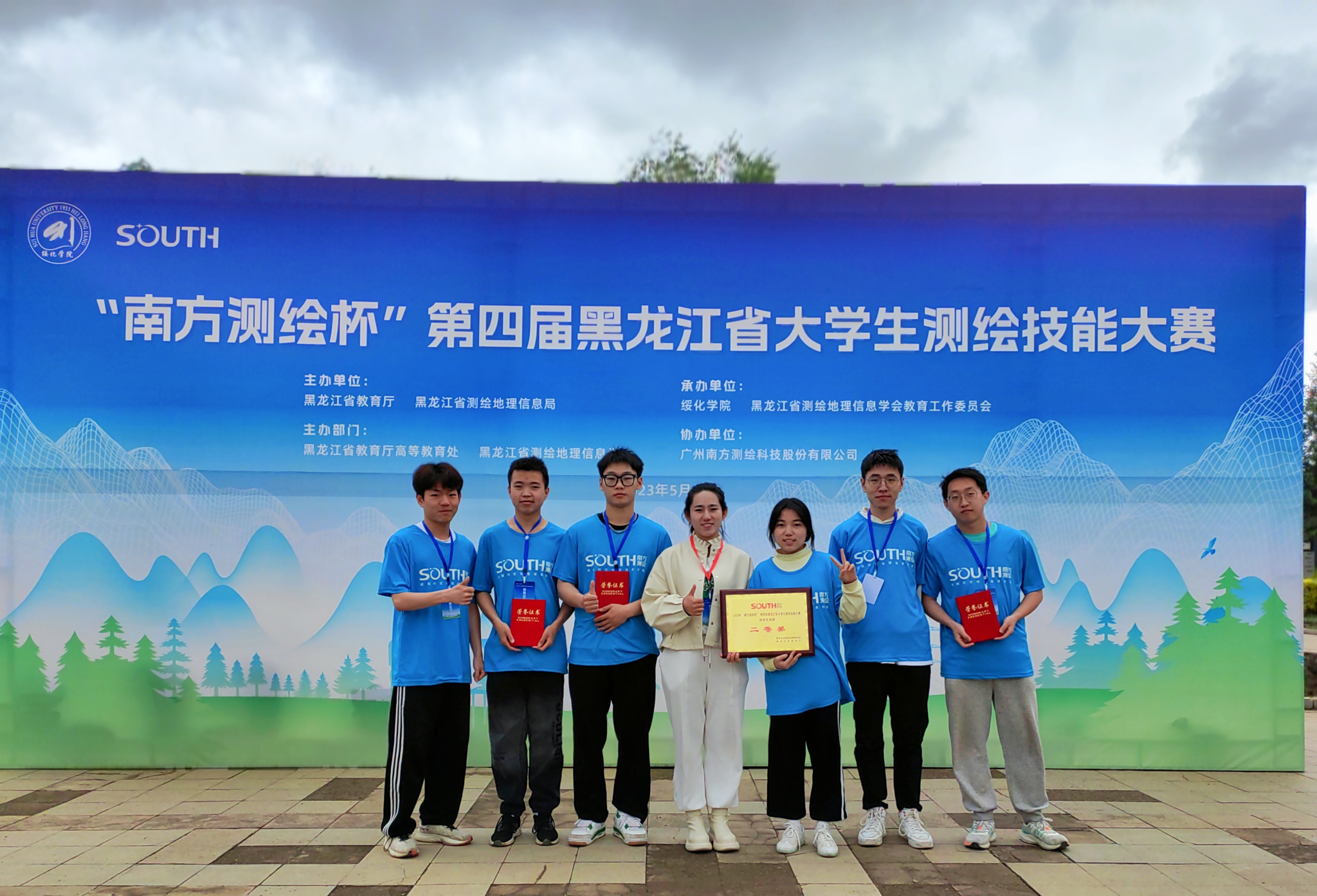 5月19日至21日,由黑龙江省教育厅、黑龙江省测绘地理信息局联合主办,绥化学院承办,广州南方测绘科技股份有限公司协办的“南方测绘杯”第四届黑龙江省大学生测绘技能大赛决赛圆满结束。由我校地球科学学院2021级地球化学专业刘长远、张博、彭第初、李子洋、李强和地质学专业胡蓉共6名学生组成的5支队伍代表学校参赛,经过激烈角逐,荣获一等奖1项、二等奖2项,学校获得团体二等奖。