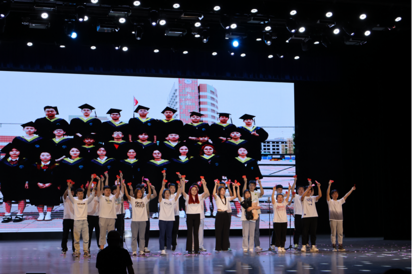 期间,2019级毕业班辅导员赵瑛杰老师登台寄语全体毕业生,她详细回顾了与同学们相处的点滴瞬间,表达了对每位学生的美好祝愿,并通过深情演绎的朗诵《我亲爱的孩子们》叮嘱同学们珍惜当下的美好生活,用实际行动回报祖国和母校的培养。