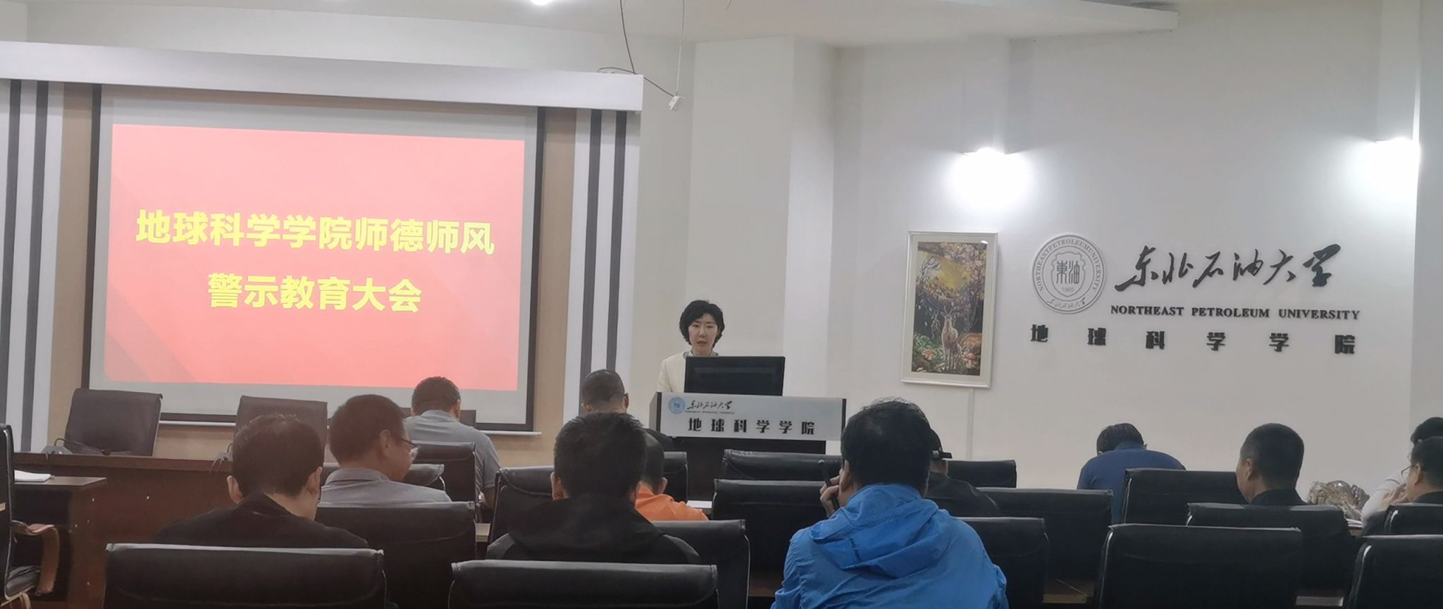 按照习近平总书记关于把师德师风作为评价教师队伍素质第一标准的重要指示精神,根据学校《师德师风专项整治工作方案》安排,5月24日下午,世界杯官网在地科馆511召开师德师风警示教育大会,全院教职工参加会议,大会由学院党委书记韦丹宁主持。