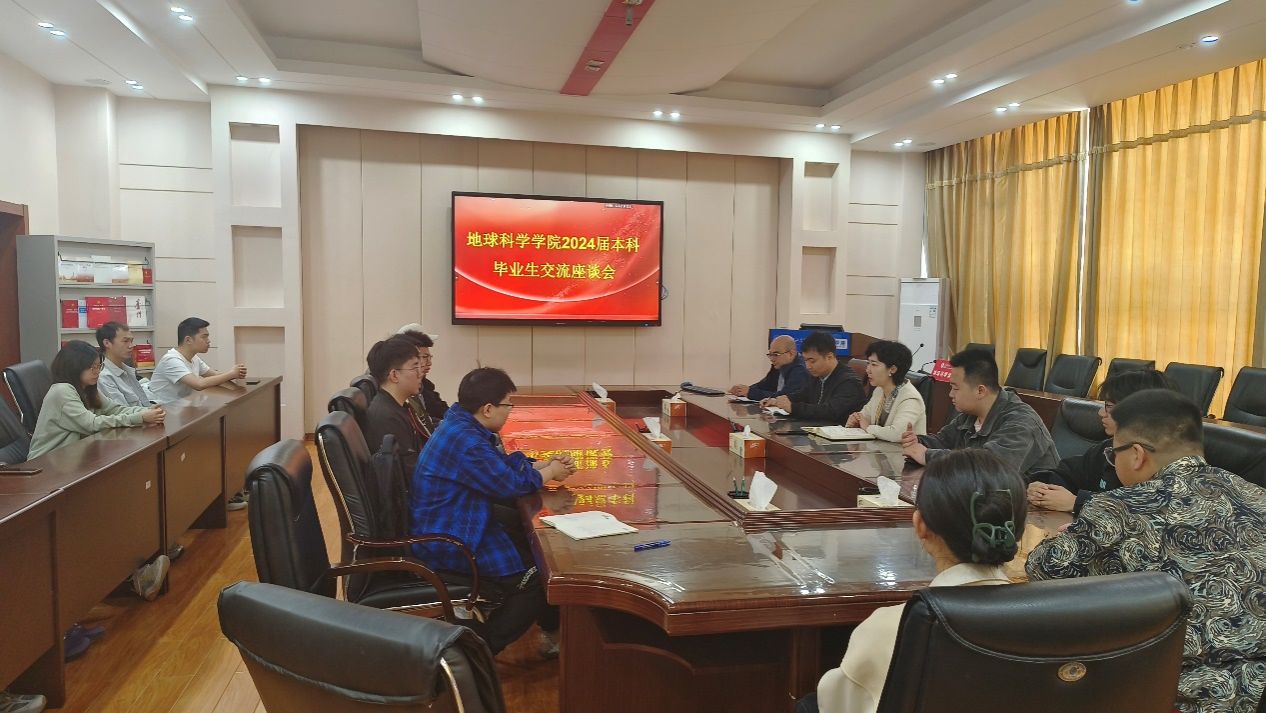 5月16日上午,地球科学学院2024届毕业生座谈会在地科馆514会议室举行。学院党委书记韦丹宁、资源勘查工程系主任史集建、勘查技术与工程系主任王宁、副主任曾科以及20位不同专业的毕业生代表参加了本次座谈会。