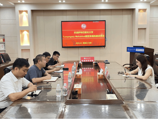 8月2日,哈萨克斯坦萨特巴耶夫大学Tursyngazy Mahabbat教授来世界杯官网交流,副院长朱焕来、王海学和资源勘查工程系主任史集建、地球信息科学与技术系主任吴海光参加了交流活动,会议由朱焕来主持。