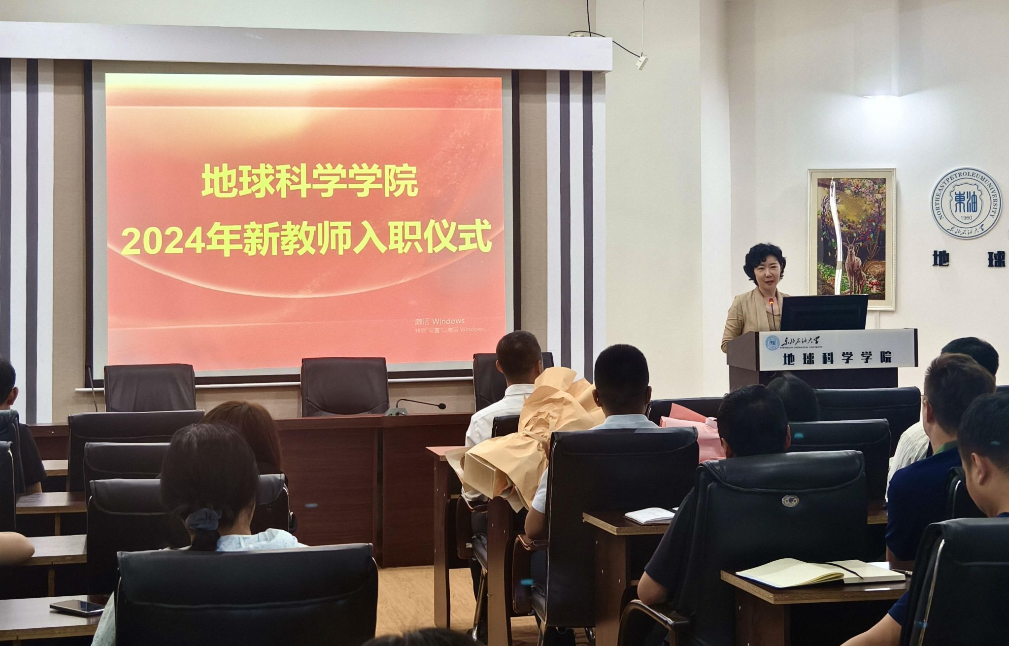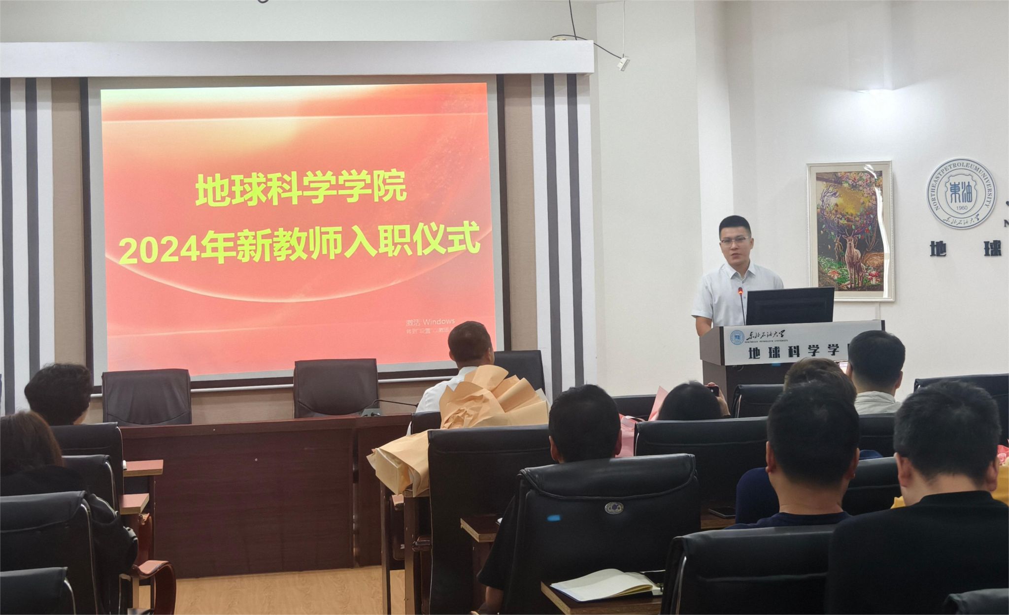 在第四十个教师节来临之际,为大力弘扬践行教育家精神,强化新教师对职业身份的认同感,提升立德树人的责任感和使命感,增强新教师对学校及学院的归属感,9月2日下午,地球科学学院2024年新教师入职仪式在学院会议室隆重举行。学院领导班子、全体教师和新入职教师参加仪式,党委副书记王钢主持仪式。