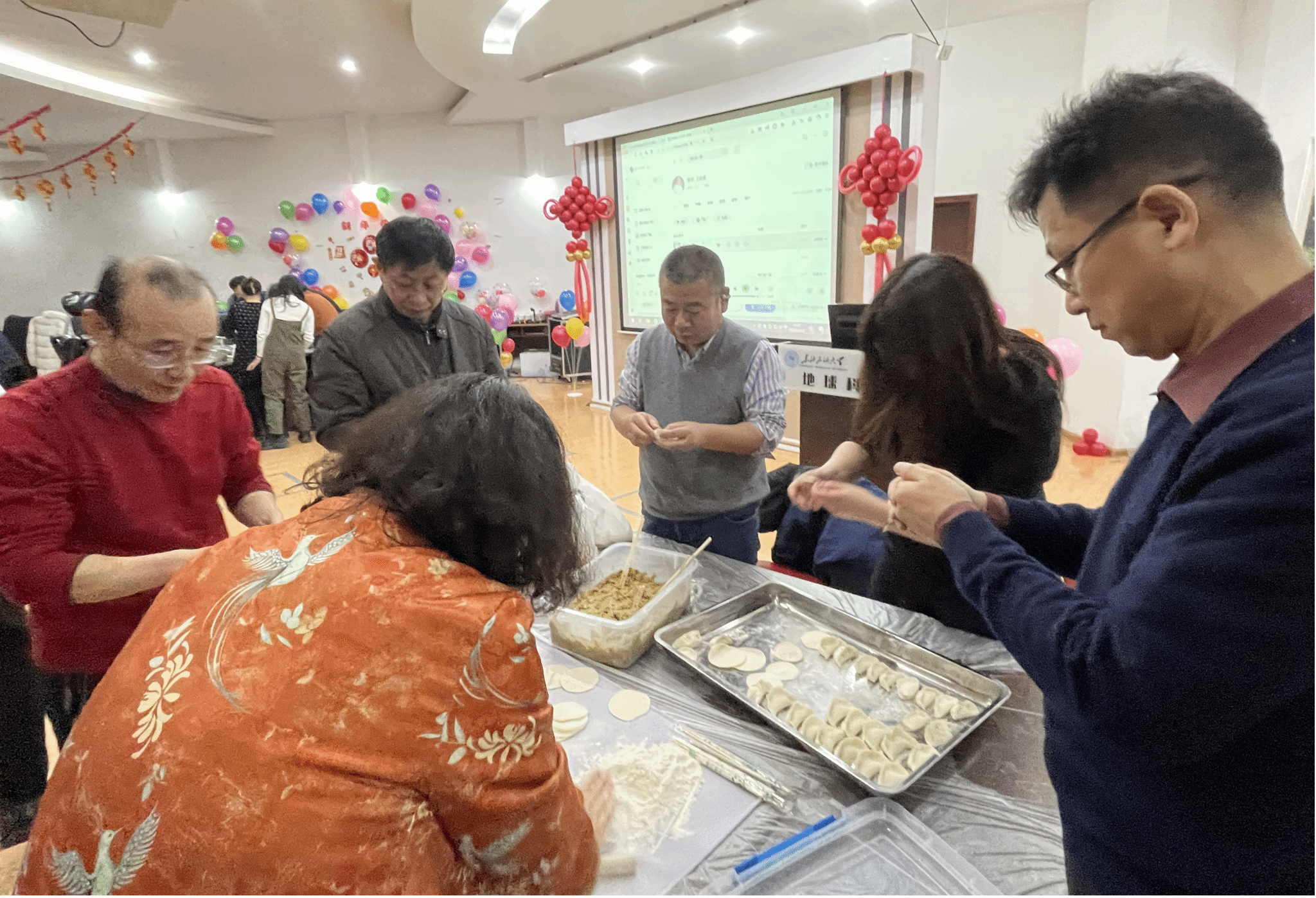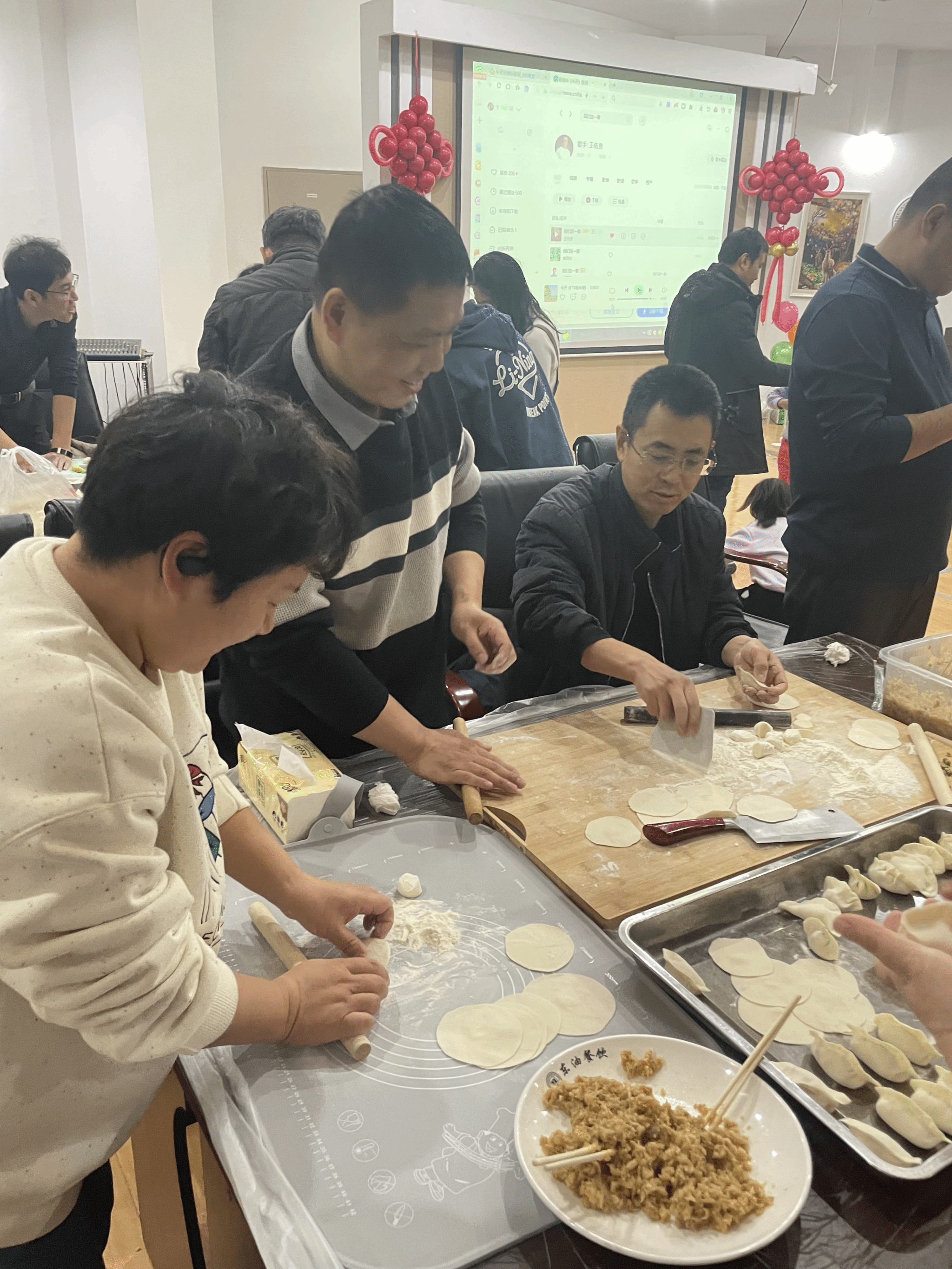 饺子在中国传统中有着团圆、平安、幸福等美好的寓意。在包饺子环节,老师们围坐在一起团剂子、擀皮儿、包饺子,相互交流着包饺子的技巧,分享过去一年的工作生活中收获与趣事,也展望新一年的期待与蓝图,每一颗饺子都饱含着大家对新一年的美好期望。最后,热气腾腾的饺子出锅,大家品尝着自己的劳动成果,感受着浓浓的节日氛围与集体的温暖。