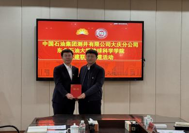 会上朱焕来、赵清艺分别介绍了地球科学学院和中油测井大庆分公司基本情况。赵清艺部长宣读了《联建共建协议书》,韦丹宁和马潜代表双方单位签订了联建共建协议,并共同为党建共建单位揭牌。