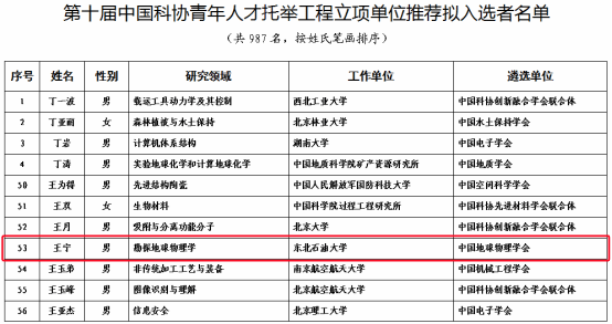 近日,中国科协公布了第十届“青年人才托举工程”入选名单,我院教师王宁入选。