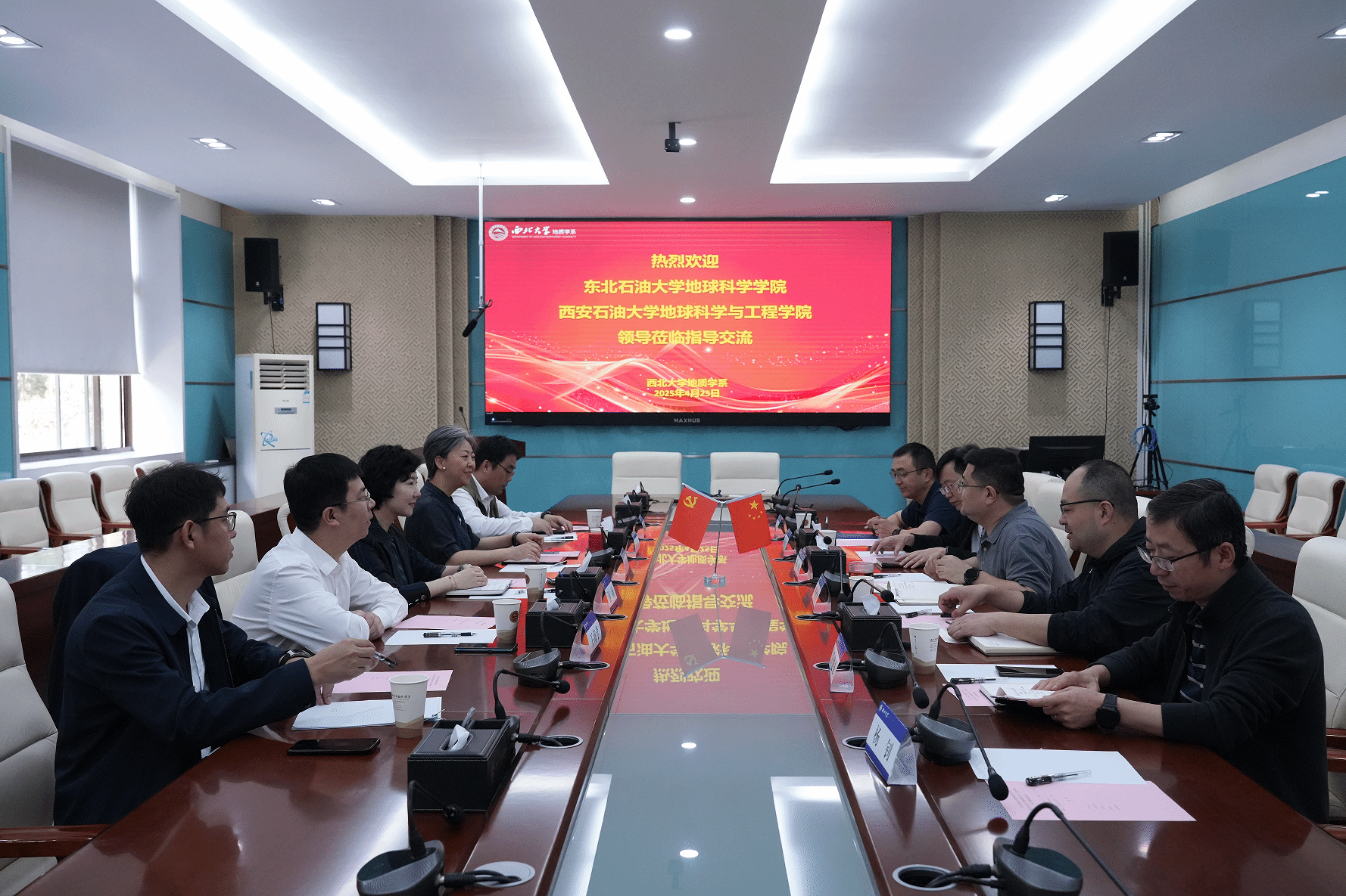4月25日,韦丹宁、孙雨一行赴西北大学地质学系考察调研,并与学院党委书记陈峰、副主任龙小平、王建强、李青彦及部分三级单位负责人座谈交流。双方就党建业务融合、学科建设、人才培养和师资队伍建设等方面进行了深入研讨。双方表示,要持续加大校际间合作力度,在全国样板支部联建、实习实训基地共享、学生互访交流、青年教师培养等方面开展更广泛的合作,共同推动两校互利共赢、协同发展,为保障国家能源安全作出积极贡献。