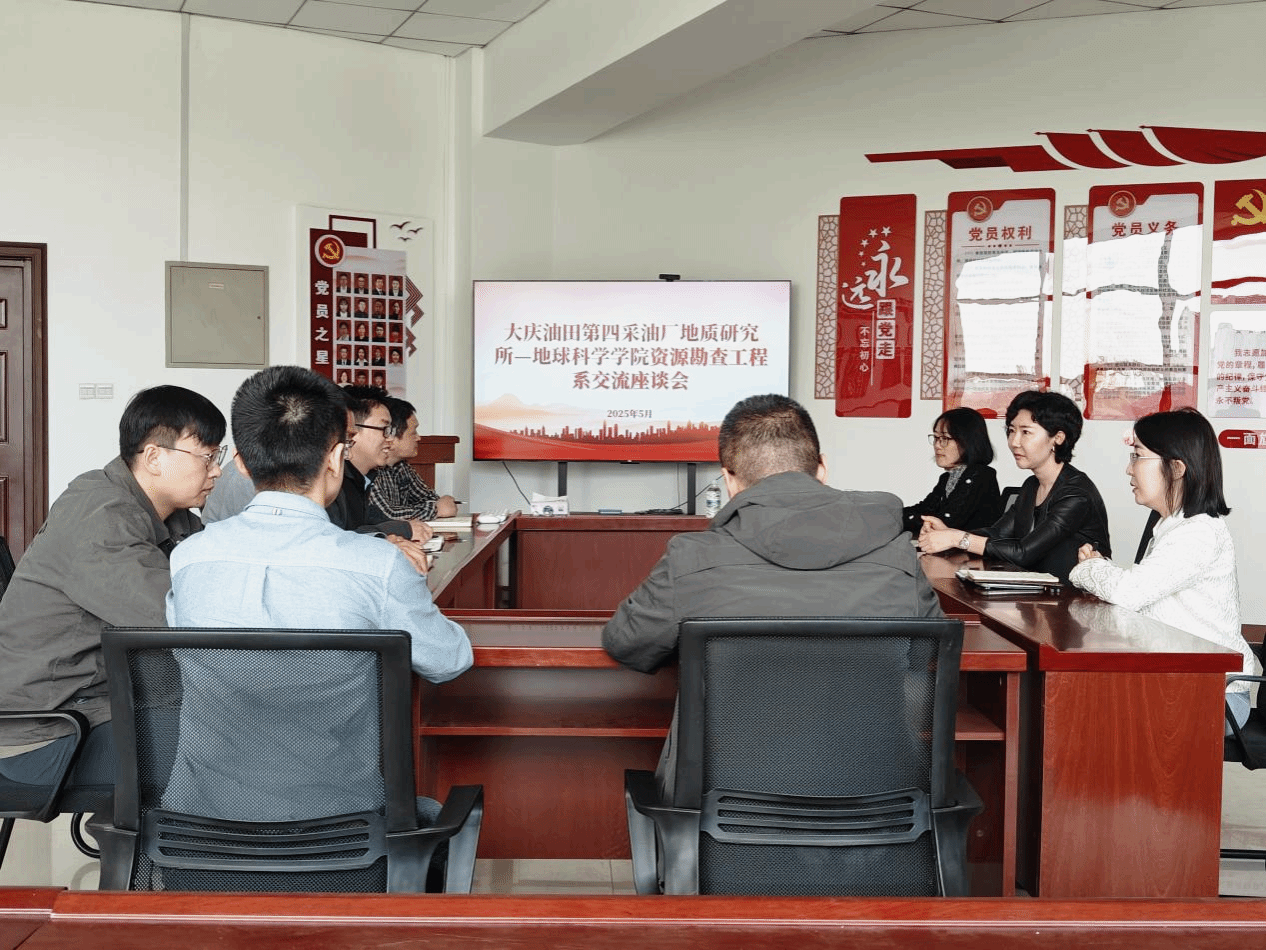 为加强资源勘查工程系党支部和大庆油田第四采油厂地质研究所地质室党支部的党建共建,促进本科人才培养工作质量提升,5月22日,大庆油田第四采油长地质研究所副所长郁文带队来地球科学学院资源勘查工程系座谈交流,学院党委书记韦丹宁、资源勘查工程系主任蒋飞、副主任杜先利、油田挂职专家齐林海及部分教师代表参加座谈。