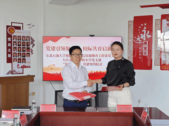 为进一步推进两校的交流与合作,5月23日,地球科学学院资源勘查工程系党支部与大庆市祥阁学校小学党支部,举行“党建引领聚合力 校际共育启新程”党支部联建共建签约活动。
