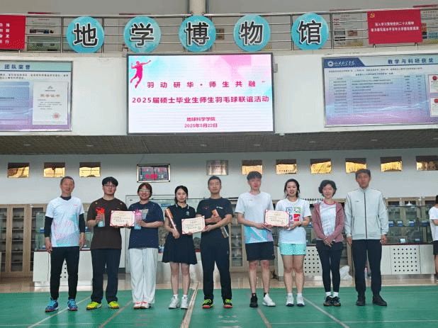 5月25日下午,地球科学学院羽毛球场地上洋溢着欢笑与温情,“羽动研华,师生共融”2025届硕士毕业生师生羽毛球联谊活动圆满举行。本次活动由地球科学学院研究生会主办,旨在为即将踏上新征程的硕士毕业生与导师搭建别具意义的告别舞台,以运动之名珍藏校园情谊,以竞技之趣共话师生情深。