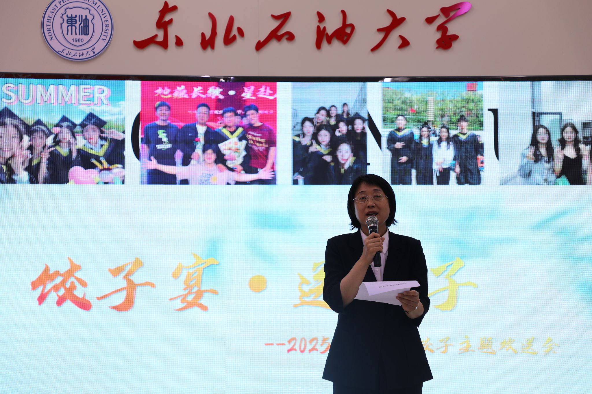 活动在歌声中拉开序幕。副校长石颖在致辞中高度赞扬了毕业生们用行动诠释了东油人“精强闯实”的担当精神:有的选择奔赴油田一线做“实干先锋”,有的继续深造成为“未来科学家”,还有的选择扎根龙江做“向阳花”。她寄语毕业生四点期望:一要心怀理想,将个人梦想融入国家发展;二要终身学习,保持奋斗精神;三要守正创新,传承东油精神;四要追求卓越,勇敢面对挑战。希望学子们永远记得东油这个家,记得这顿饱含祝福的饺子宴。