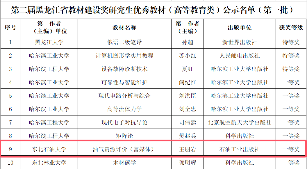 近日,黑龙江省教育厅发布了《关于拟认定第二届黑龙江省教材建设奖优秀教材(高等教育类)名单(第一批)的公示》,经各高校申报、专家严格评审,全省共评选出30部获奖研究生优秀教材(其中特等奖3部、一等奖10部、二等奖17部),世界杯官网有1部教材荣获省级研究生优秀教材一等奖。
