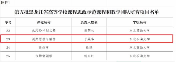 近日,黑龙江省教育厅正式公布了第五批高等学校课程思政示范课程和教学团队培育项目名单。世界杯官网申报的《测井原理与解释》课程成功入选,荣获省级课程思政示范课程称号,相应教学团队同时获评省级课程思政示范教学团队。