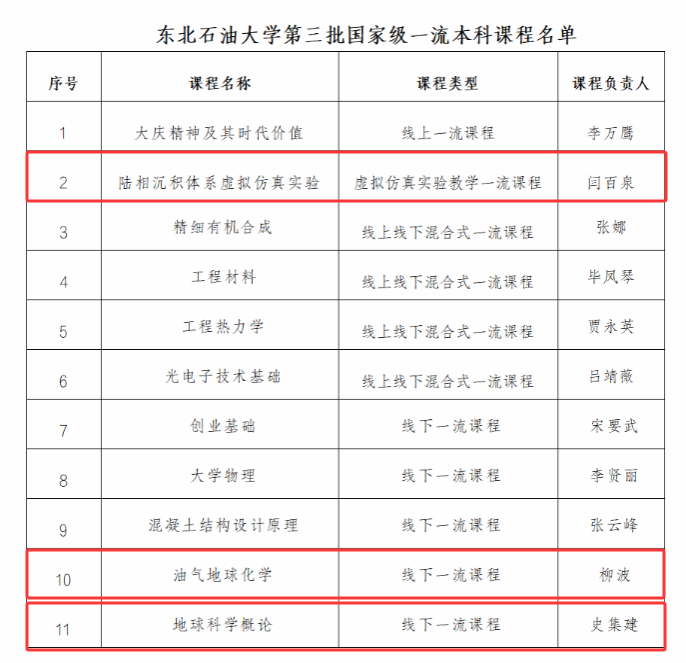 近日,教育部公示了第三批国家级一流本科课程认定结果。世界杯官网推荐的《陆相沉积体系虚拟仿真实验》《油气地球化学》《地球科学概论》三门课程成功获评国家级一流本科课程。