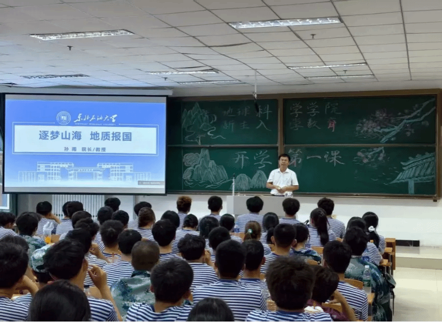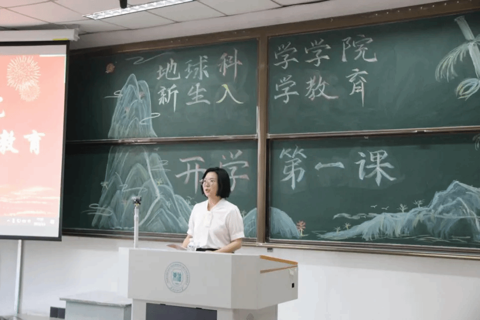学院党委书记韦丹宁以《开启地学人生 赋能能源未来》为题讲授“开学第一课”,从国家能源战略需求切入,系统阐释地学学科的时代价值,引导新生建立“专业成才一行业建功一国家贡献”的成长认知链。