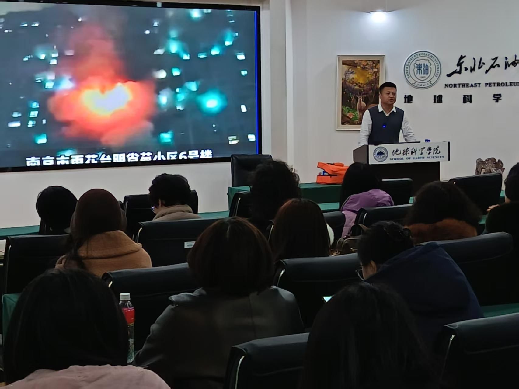 为进一步强化全院师生消防安全意识,提升应急避险与自救互救能力,筑牢校园安全防护屏障,11月14日下午,地球科学学院在地科馆组织开展消防安全知识培训暨火灾疏散逃生演练活动。学院全体教师参加此次活动。