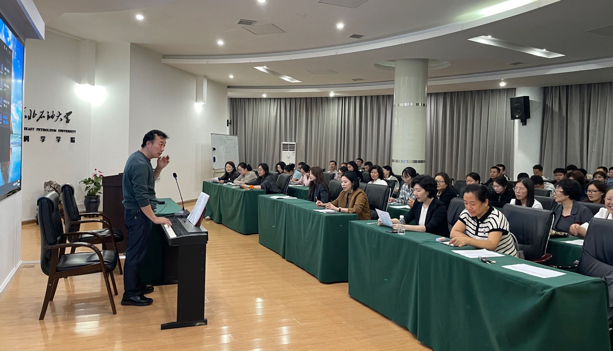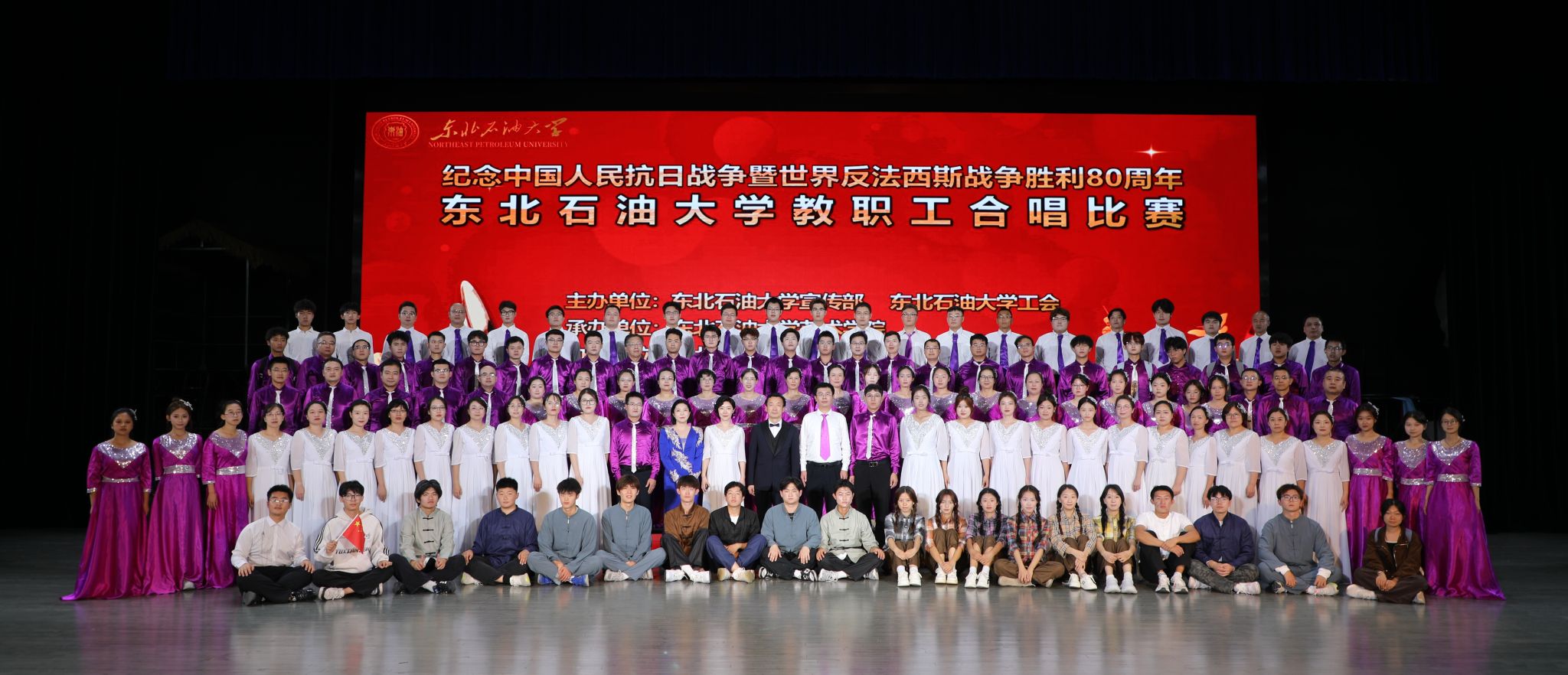 本次合唱比赛是学校首届铁人合唱文化节的重要组成部分,亦是“文化润校工程”的关键活动,由党委宣传部、校工会主办,艺术学院承办,汇聚了全校25个单位组成的17支队伍参加演出。学院党委高度重视此次比赛,将其视为传承红色基因、凝聚团队力量的重要契机——从曲目选择到编排排练,全院教职工积极参与、精心筹备,力求在歌声中融合抗战记忆与地学特色。