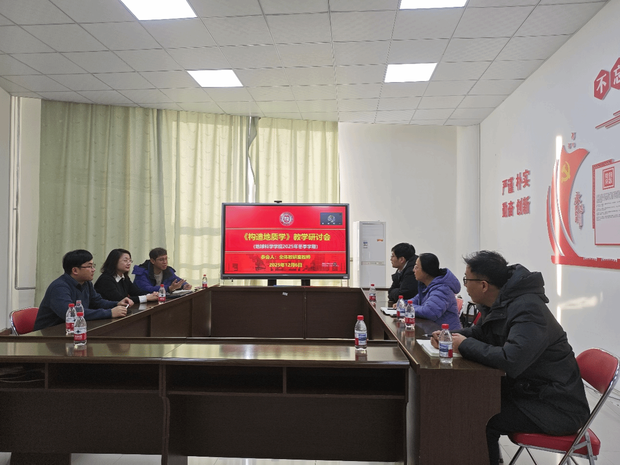 2025年12月6日,《构造地质学》课程教学团队在地科院503开展了教学研讨活动。会议由王海学主持,课程组教师赵荣、王有功、平贵东、马静辉、易泽军参加了线下会议会议,杨霄雨、刘志达参加了线上会议。