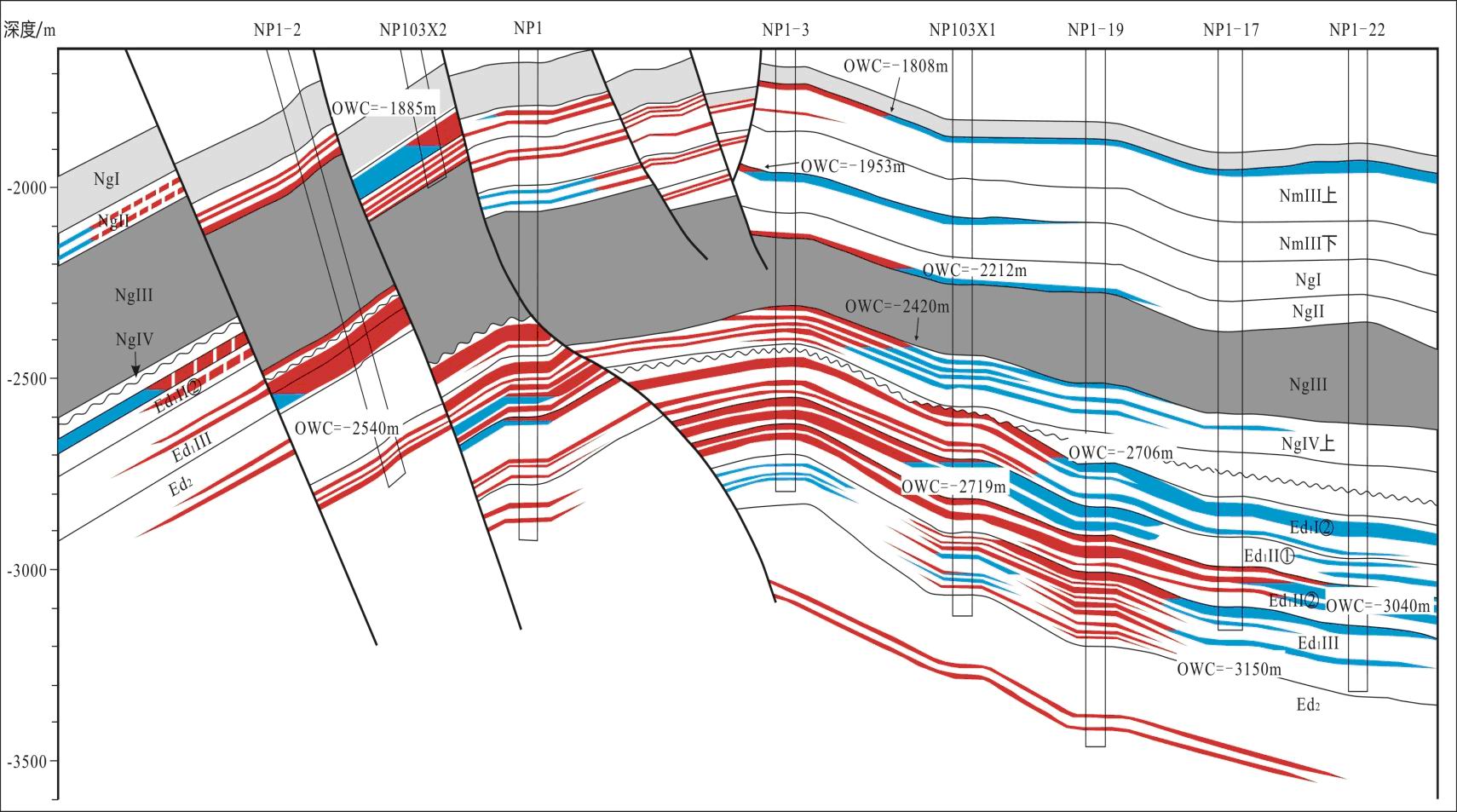 膏泥岩埋藏史和脆-塑性转换关系模式图 断-盖共控油气富集典型油藏剖面(南堡1号构造)