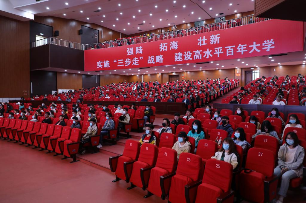 聘任仪式后,刘玉强教授做客东油大讲堂,在音乐厅作了题为“筑牢正确思想,迈向成功未来”专题报告。他以一位老学长、一位家长的身份,从时代要求、如何学习、思想准备、工作态度、关系处理五个方面分享了自己的学习、生活经验和人生态度,对同学们的成长提出了殷切期望,为大家上了一堂生动的专业教育与思想教育相结合的思政课,报告内容丰富、语言朴实、意义深远。全校辅导员及学生代表共500多人参加报告会。