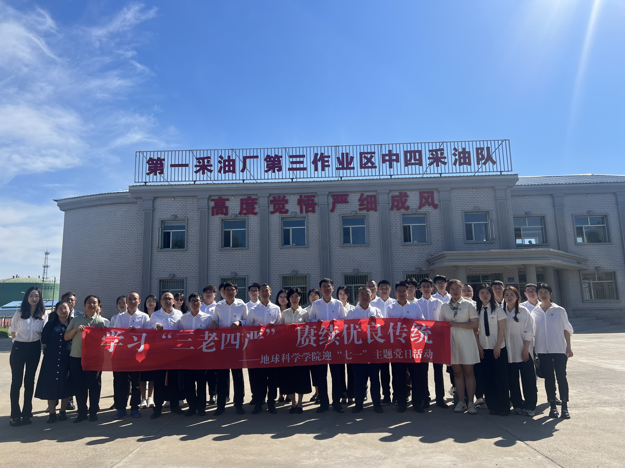 庆祝中国共产党成103周年,继承和发扬党的光荣传统与优良作风,67日下午,地球科学学院组织师生党员来到大庆油田中四采油队开展“学习‘三老四严’ 赓续优良传统”迎“七一”主题党日活动。