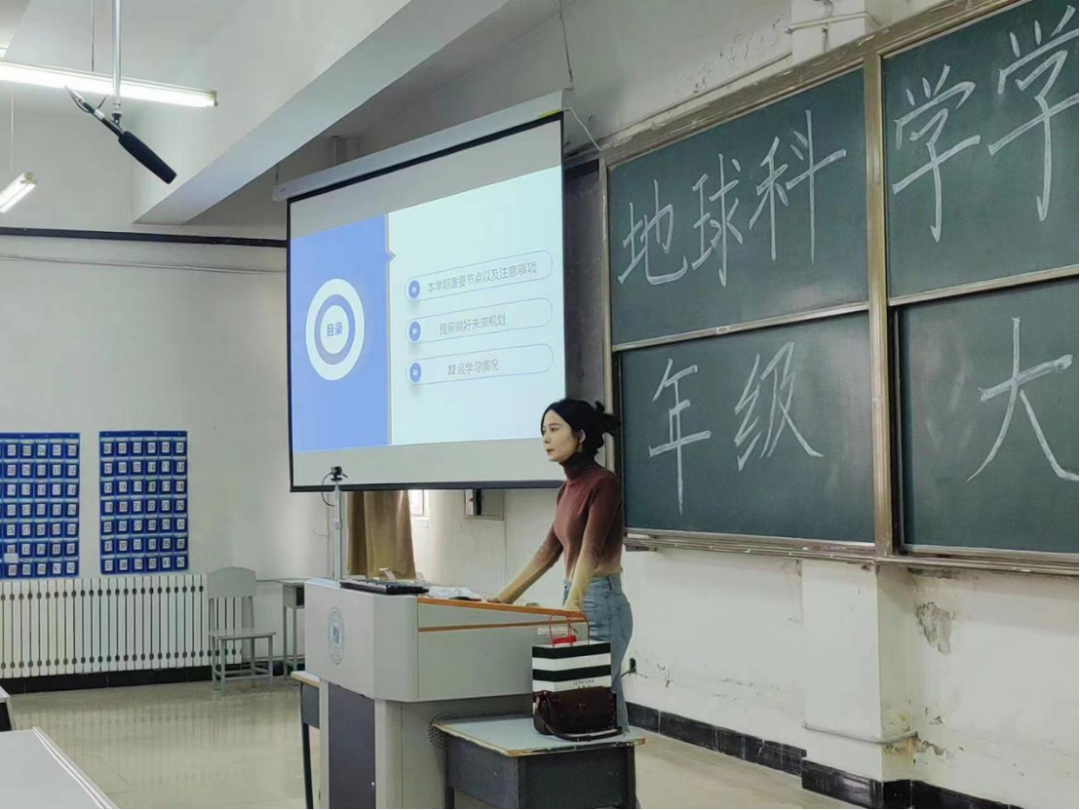 为总结分析上学期年级情况,明确新学期各项任务,2024年3月16日,地球科学学院2022级于一教1H-310召开了本学期第一次年级大会,辅导员李海悦与2022级全体同学参与。