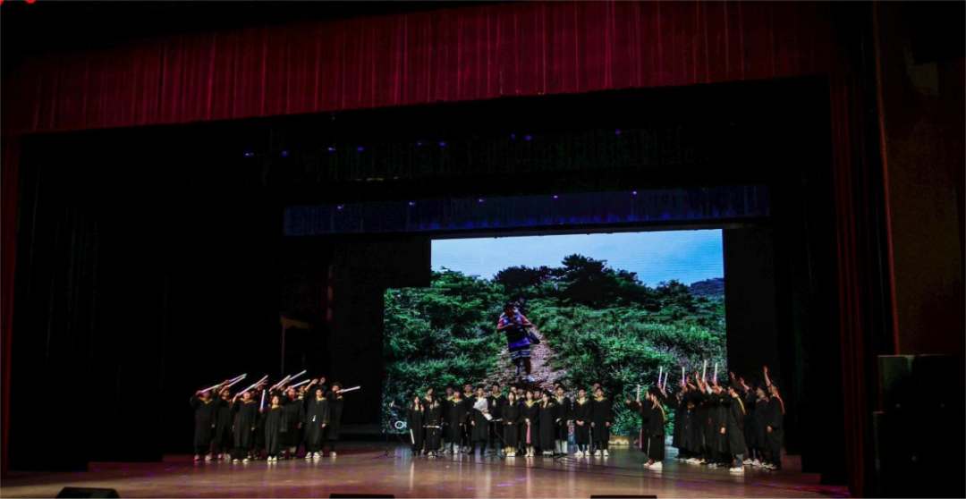 独唱《灯火里的中国》以“灯火里的中国,胸怀辽阔”等词句,传达了对祖国繁荣发展的美好祝愿,也寄托了毕业生对未来的期许。