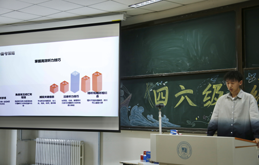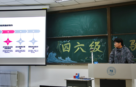 此外,曾宪洋、朱博宇同学在六级方面给我们讲解了阅读理解题型,强调了词汇量的积累和备考心态的重要性,以及对时间的把握。“多做真题,多记单词,保持做题手感,在考试中才可以应对自如。