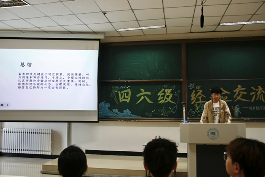 为进一步提高世界杯官网学生英语学习能力,营造浓厚的英语学习氛围,地球科学学院学生会学习部于5月31日晚成功举办了“英语四六级经验交流会”。为即将参加考试的同学们指点迷津,传授实用精辟的知识和考试技巧。