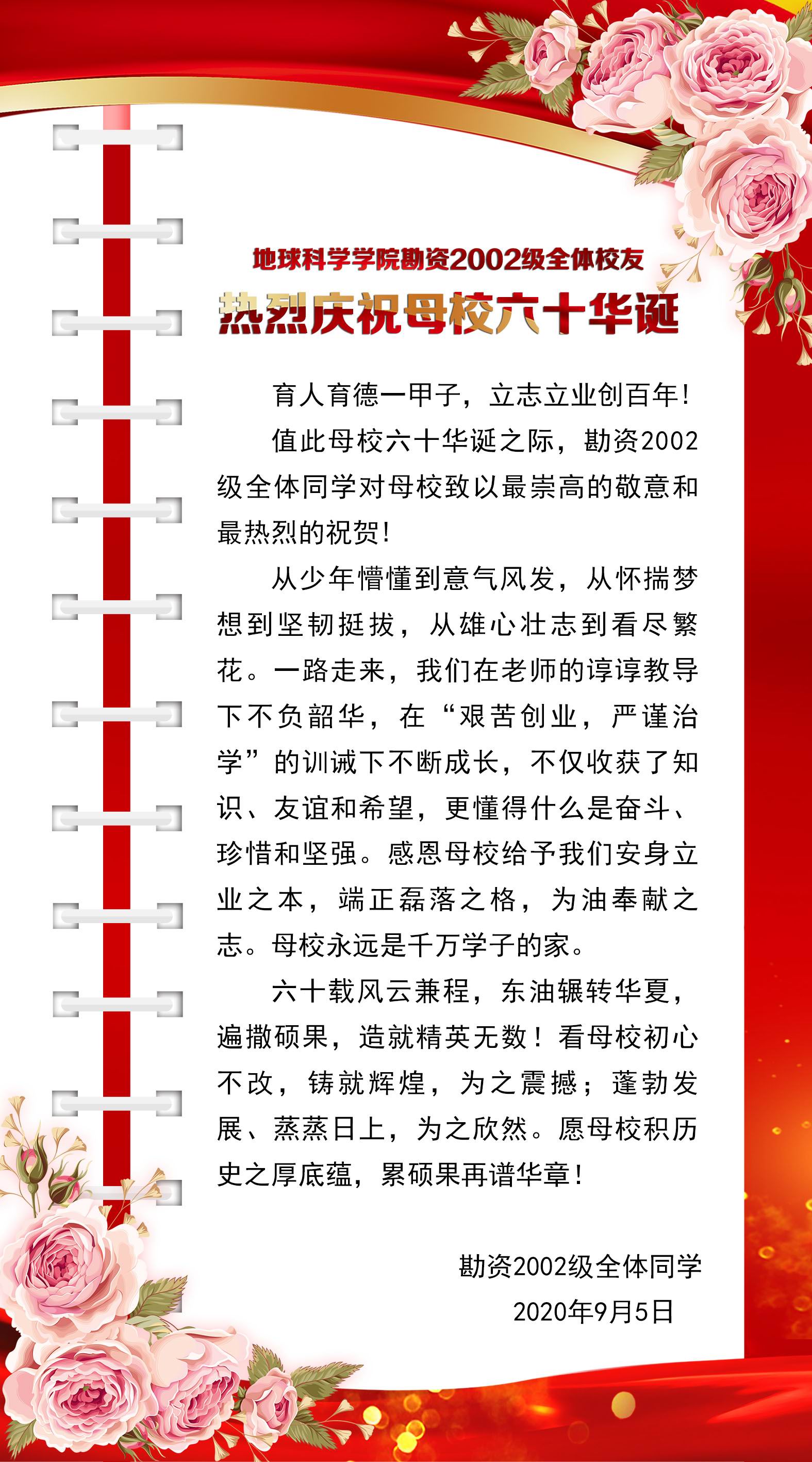 勘资2002级全体校友祝贺母校六十华诞
