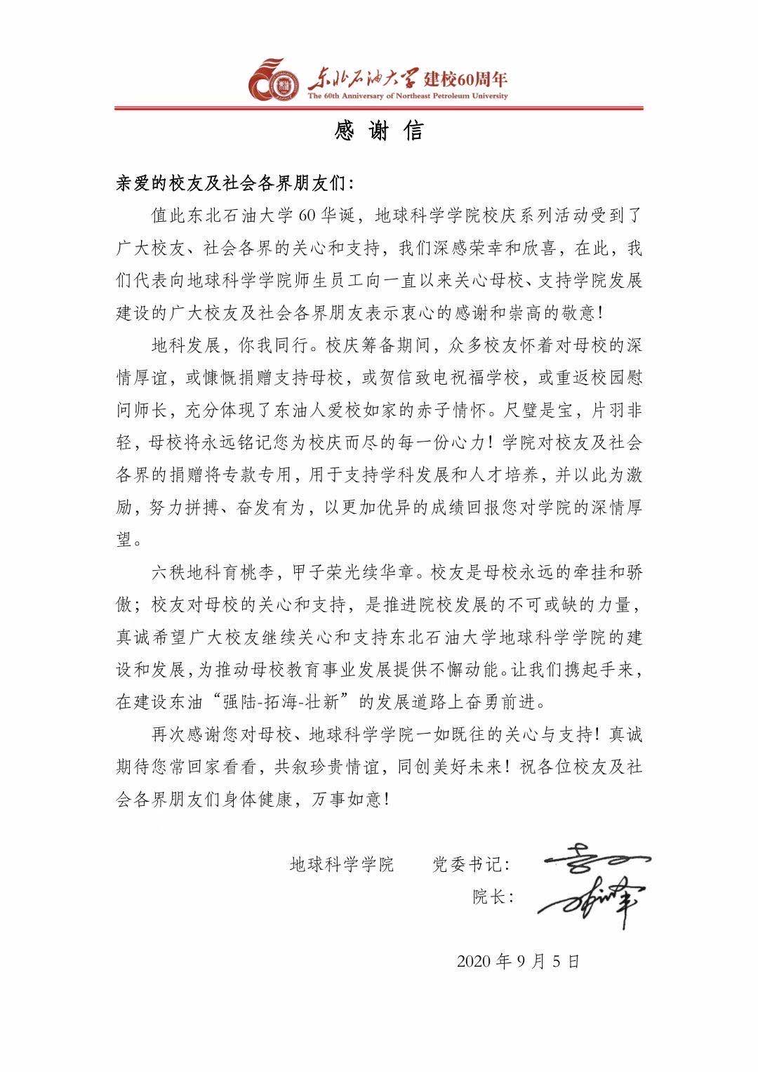 地球科学学院致校友的感谢信