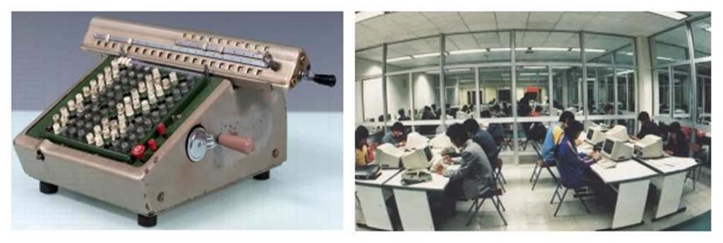 世界杯官网早期科研用的手摇计算机 80年代的机房(当时大多数学生最早接触电脑的地方)