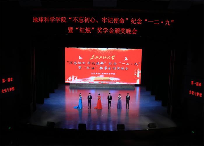 (通讯员 赵瑛杰)为深化“不忘初心、牢记使命”主题教育,纪念“一二·九”运动84周年,表彰在学习和工作中成绩突出的优秀地科学子,激励地科师生坚守初心使命,强化责任担当,12月8日,地球科学学院在学校音乐厅隆重举办“不忘初心、牢记使命”纪念“一二·九”暨“红烛”奖学金颁奖晚会。副校长高洪峰、学生工作部、校团委、后勤管理处、部分二级学院、教育发展基金会相关负责人和师生代表观看演出。