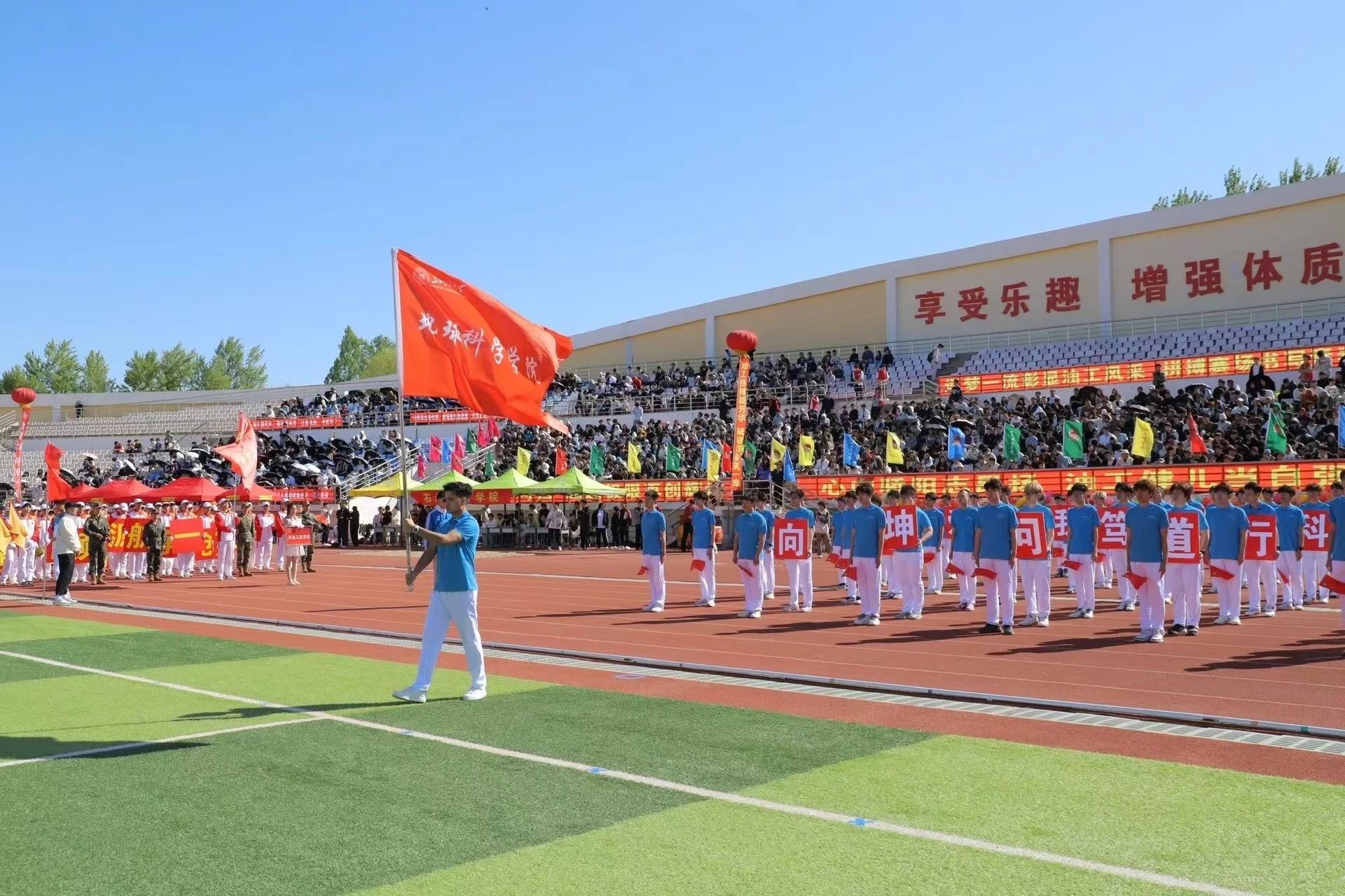 这场体育盛会不仅是竞技的擂台,更是地科学子青春活力的精彩展现。从运动员的全力冲刺到志愿者的默默守候,从震天的助威声浪到幕后的精准保障,"不畏艰难、团结奋进"的勘探精神与体育文化实现深度融合。赛道上的每个脚印、看台上的每句呐喊、计分板上的每个数字,都凝结成地科院开拓进取的澎湃动能。地科人将以体育精神为炬,以实干为楫、以担当为帆,在助力学校高质量发展的航程中破浪前行。
